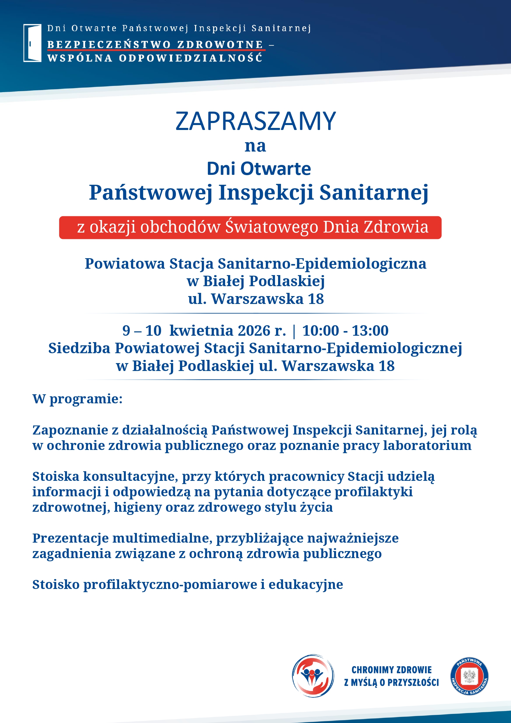 ZAPRASZAMY na Dni Otwarte Państwowej Inspekcji Sanitarnej z okazji obchodów Światowego Dnia Zdrowia